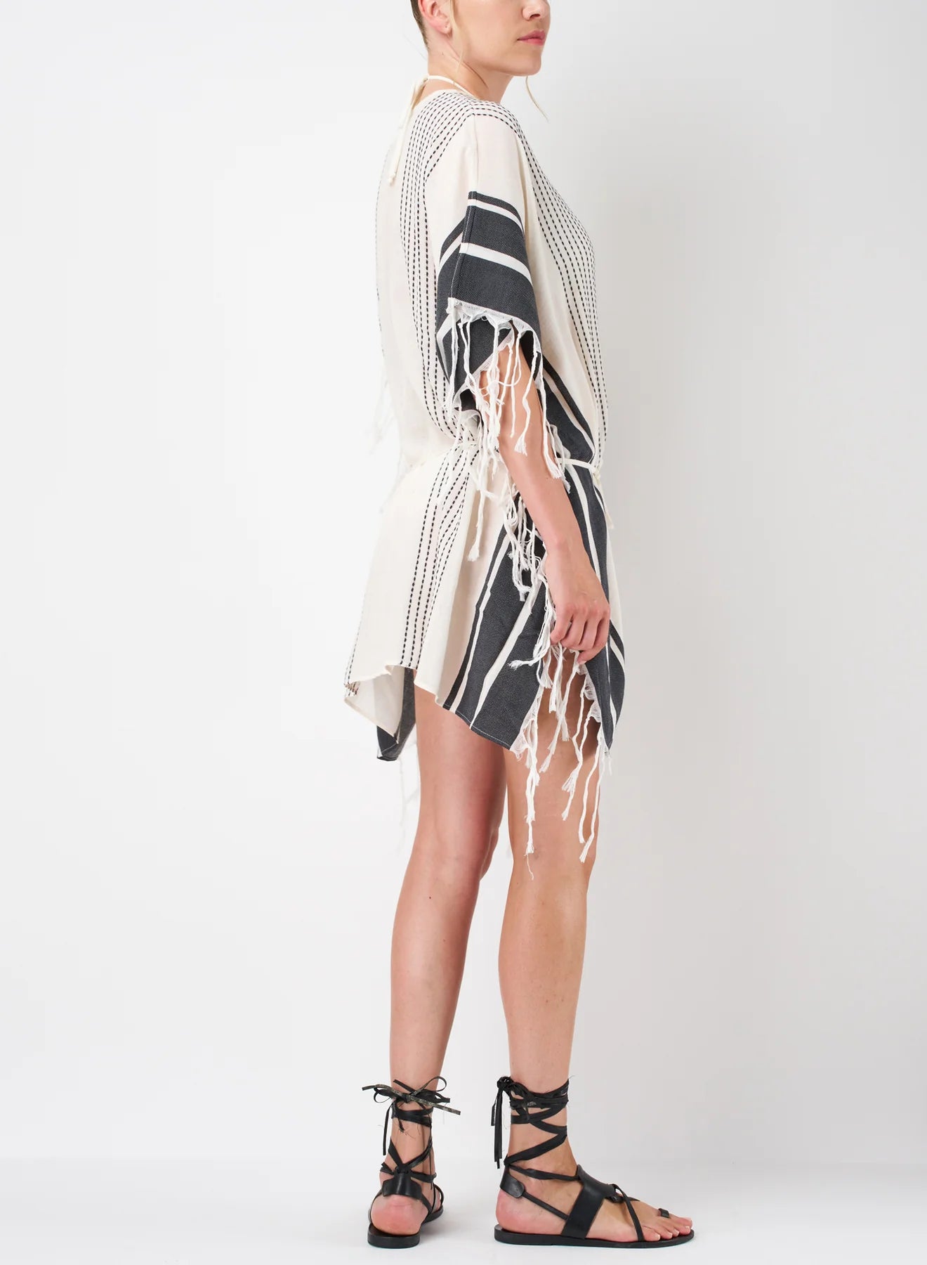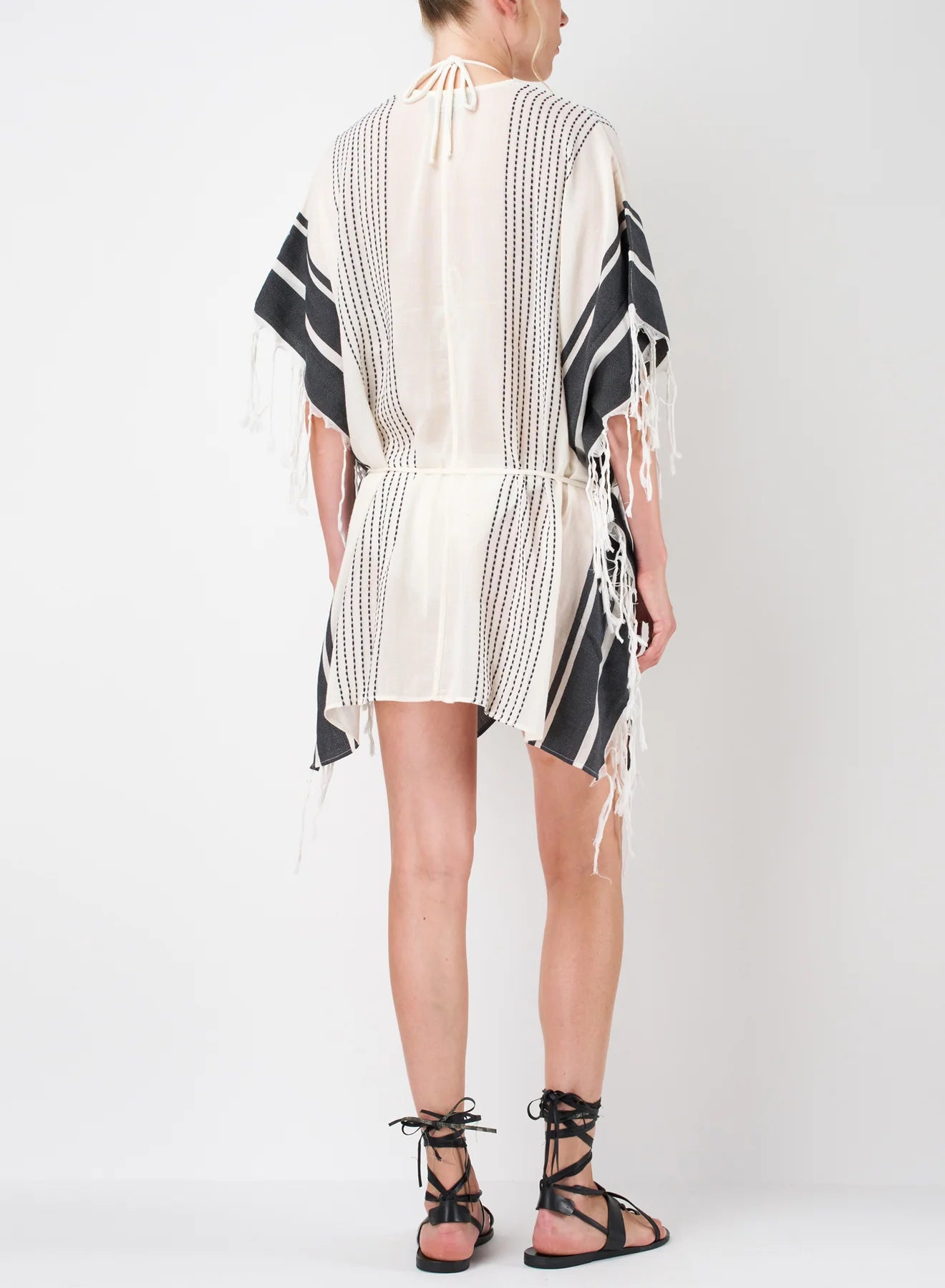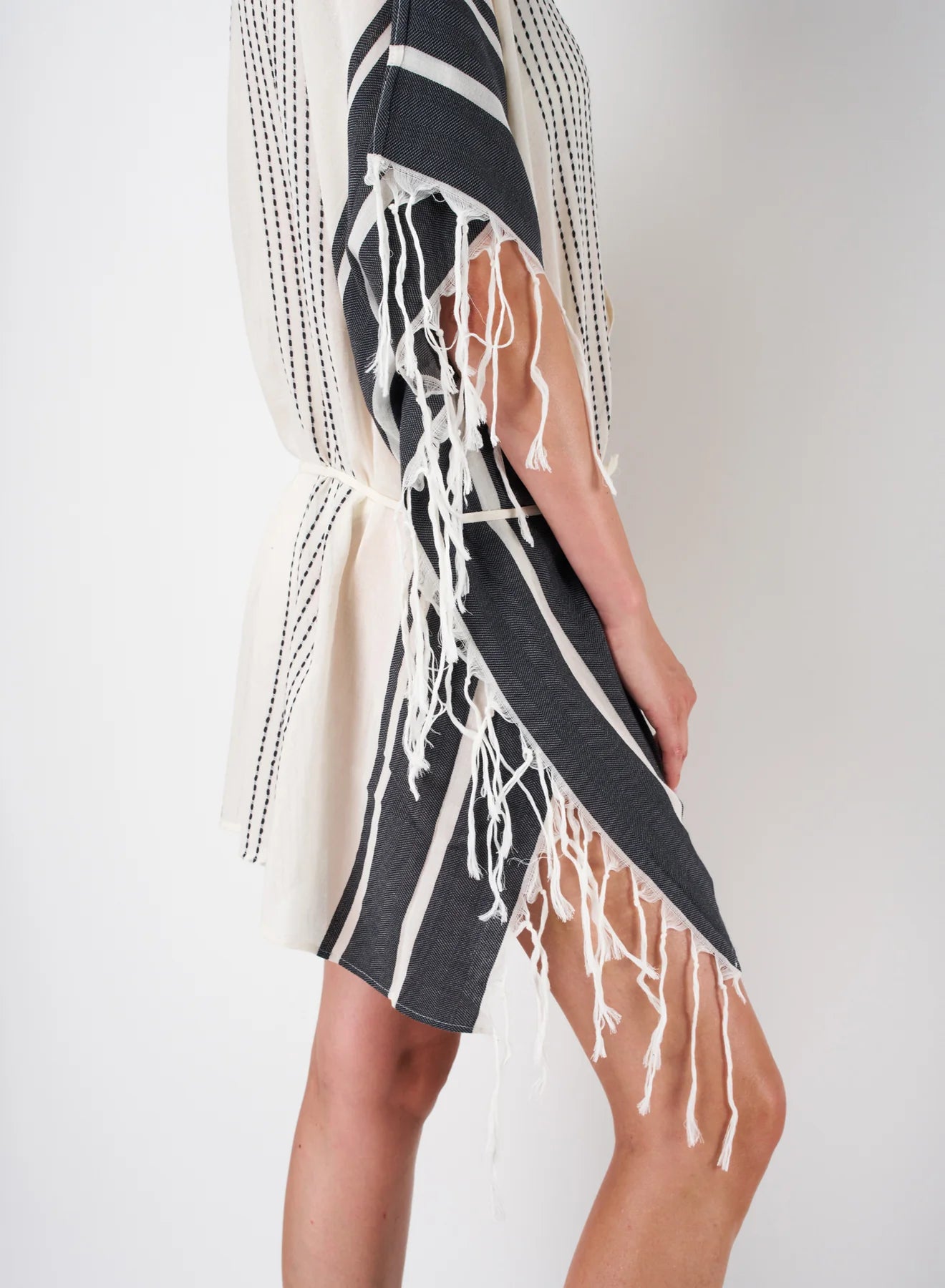 Light and effortless, the Kanacati Vest is crafted in Turkey from delicately striped cotton voile and finished with hand-knotted fringes along the sides. This mid-length cover-up is designed to be worn loose over a swimsuit or belted to define the waist. A refined piece that moves beautifully from beachside moments to elegant summer lounging